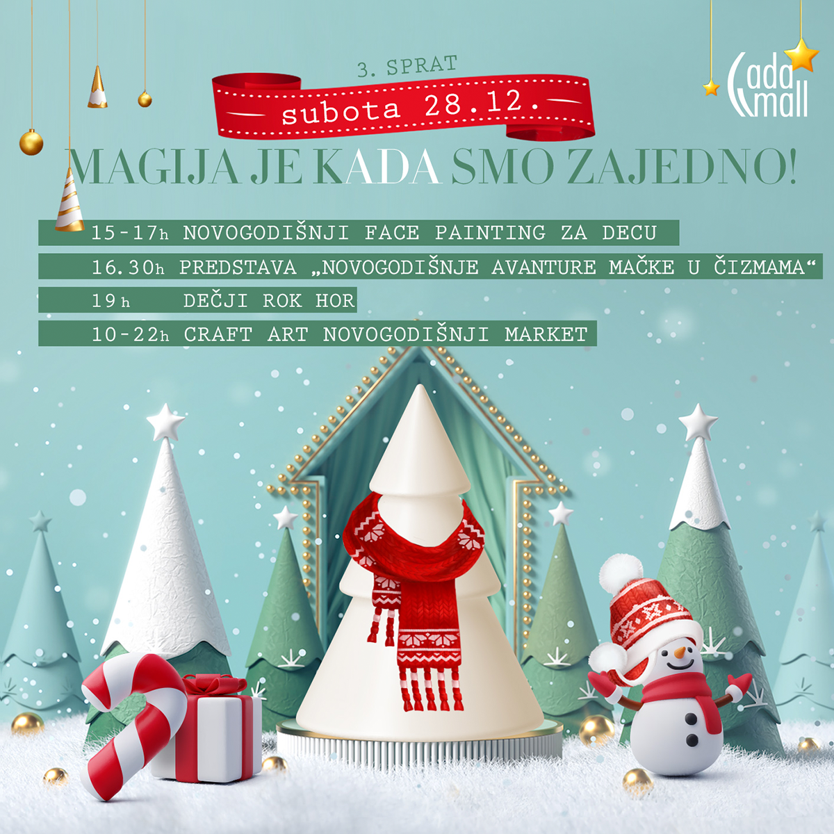 On Sunday, December 15th, on the 3rd floor of Ada Mall – fill your holiday...